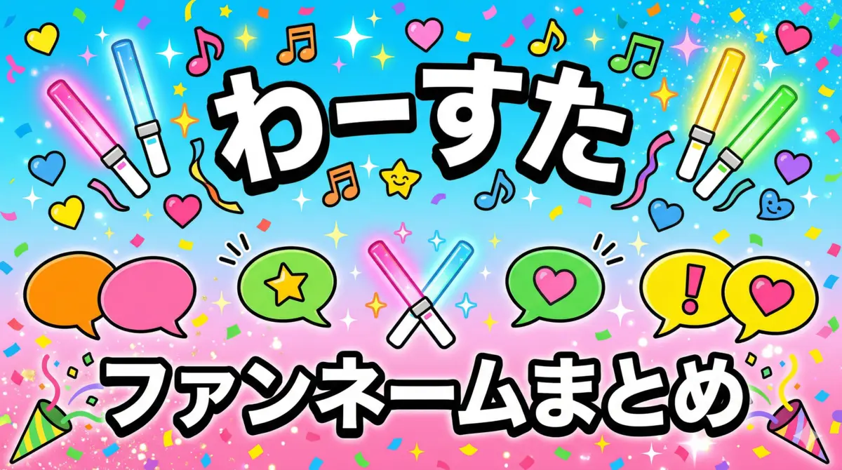 わーすたのファンの呼び名って何? ファンネームの由来や意味を知りたい メンバーごとの愛称やカラーも気になる わーすたを好きになったばかりだと、ファンの呼び名がわからない…… という方も多いのではないでしょうか。 アイドルグループにはそれぞれファンネーム(ファンの総称)があり、知っておくとSNSでの自己紹介やライブ参戦がもっと楽しくなるんですよね。 結論から言うと、わーすたのファンネームは「わーしっぷ」です。 ファンネームを知っておくと、SNSやライブで一気に仲間意識が生まれますよ! 確か...